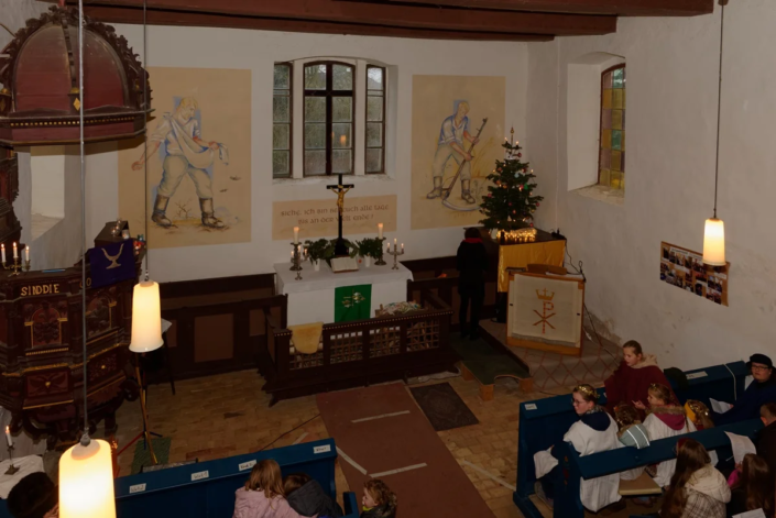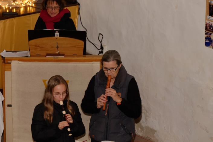 Bekannte Weihnachtslieder, eine weitere musikalische Darbietung des Flötenensembles, das gemeinsame Vaterunser sowie der Segen für die Gemeinde rundeten diesen festlichen Gottesdienst ab.