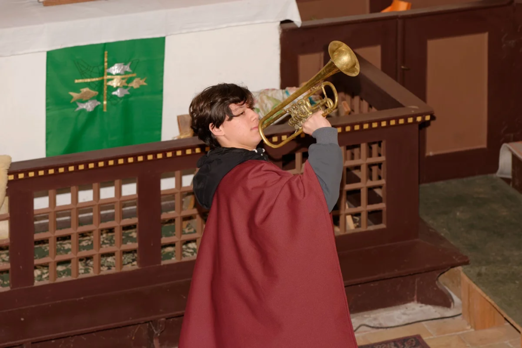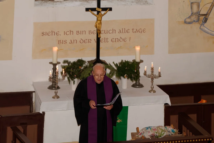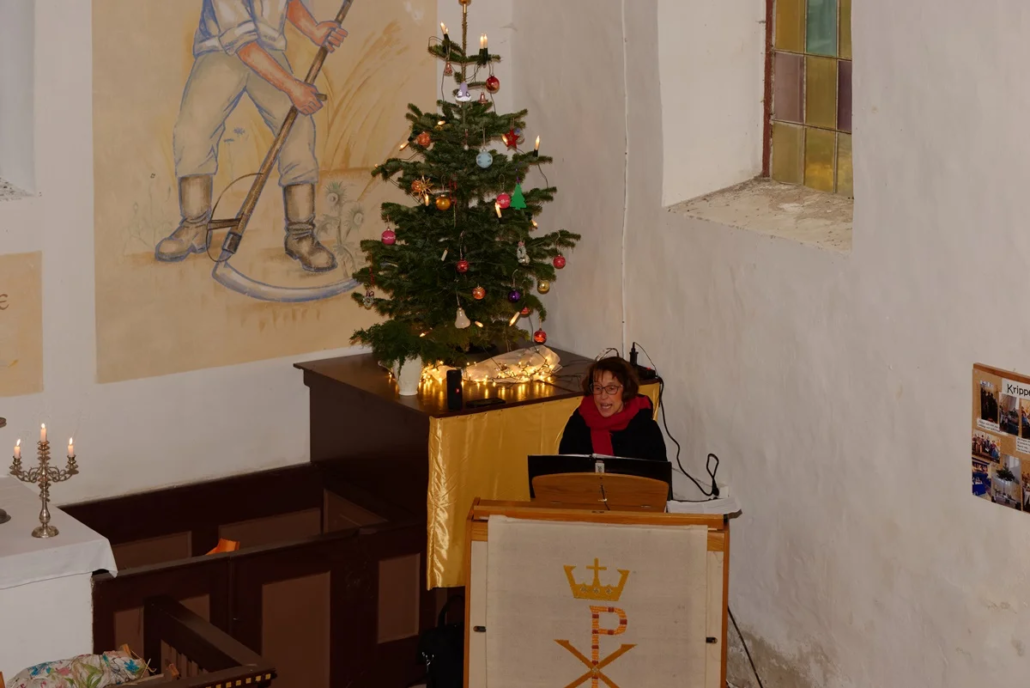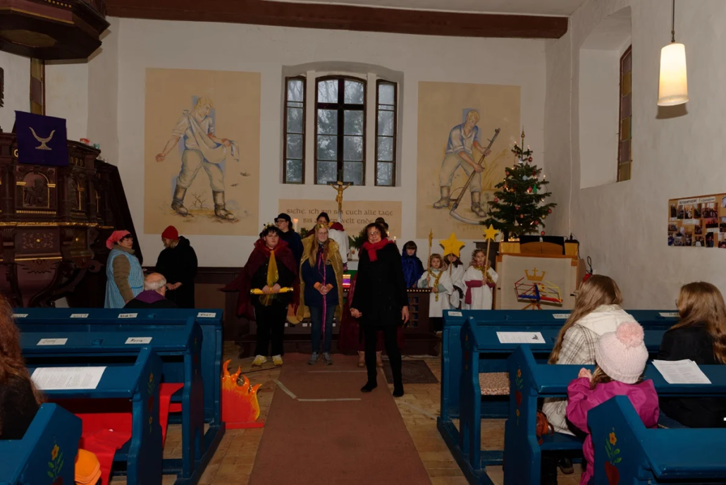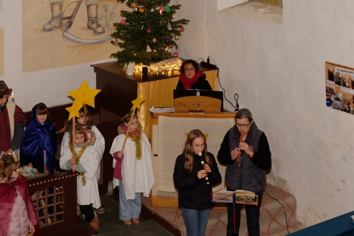 Am 4. Adventssonntag um 14:00 Uhr füllte sich die Kirche in Steinmocker bis auf den letzten Platz. Prädikant Burkhard Fröhlich begrüßte die zahlreichen Gemeindemitglieder herzlich und stimmte sie auf einen besonderen Gottesdienst ein. Gleich zu Beginn berührte Lucas an der Orgel und anschließend das Flötenensemble unter der Leitung von Kerstin Prust mit ersten Weihnachtsliedern die Zuhörer.