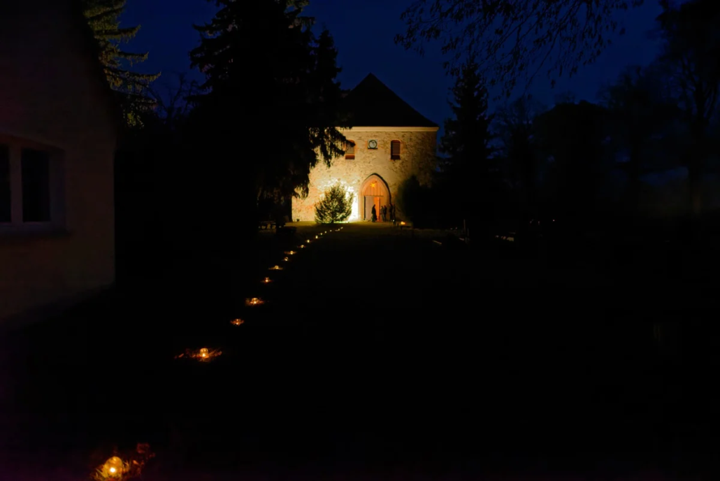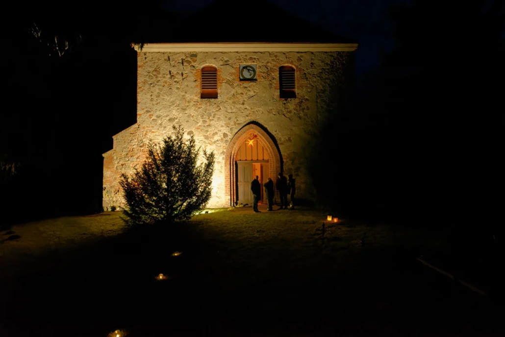„Im Lichterglanz der Lucia“ – unter diesem Motto stand die Einladung zum Adventssingen 2025 in Gramzow. Schon der Weg vom Eingang des Friedhofs bis zum Portal der Kirche war von zwei Lichterketten gesäumt, und die angestrahlte Kirche empfing die Besucher in stillem Glanz.