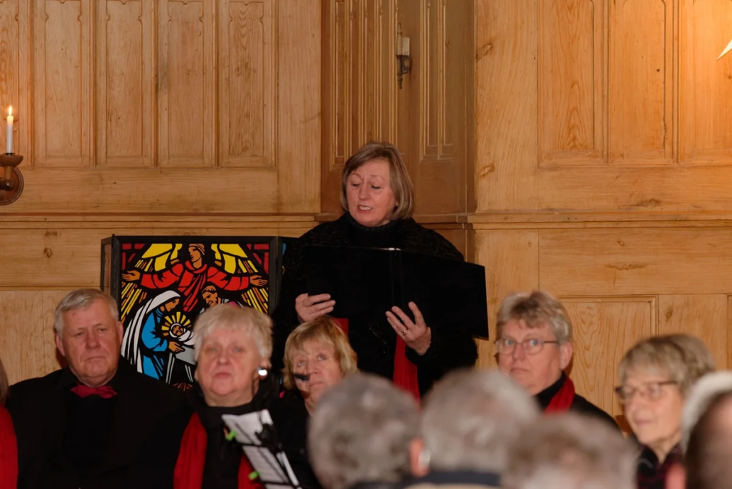 Zum Abschluss segnete Pastor Rupert Schröder Chor und Gemeinde und entließ alle mit warmen Worten in den Abend. Danach kamen Gäste und Mitwirkende bei Punsch, Glühwein, Säften und Gebäck ins Gespräch – ein lebendiger Ausklang in herzlicher Atmosphäre.