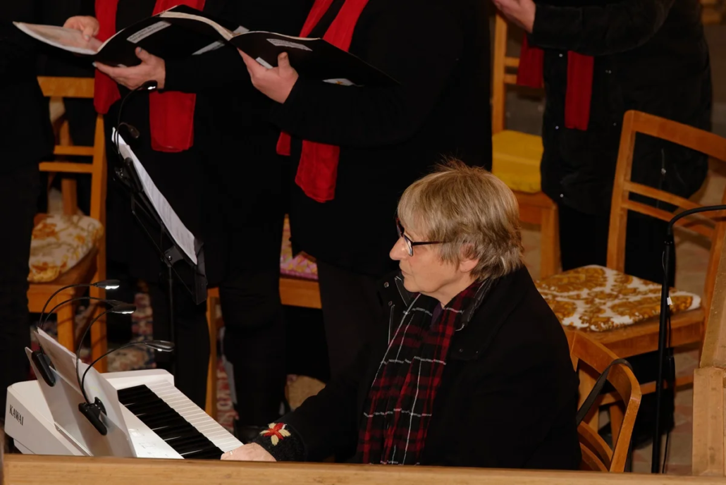 Dann erklang der erste Ton: Kirchenmusikdirektorin Ruth-Margret Friedrich am E-Piano und der Chor unter der Leitung von Kathrin Schulz eröffneten den Abend mit „Im Dunkel unserer Nacht“, gefolgt von „Santa Lucia“.