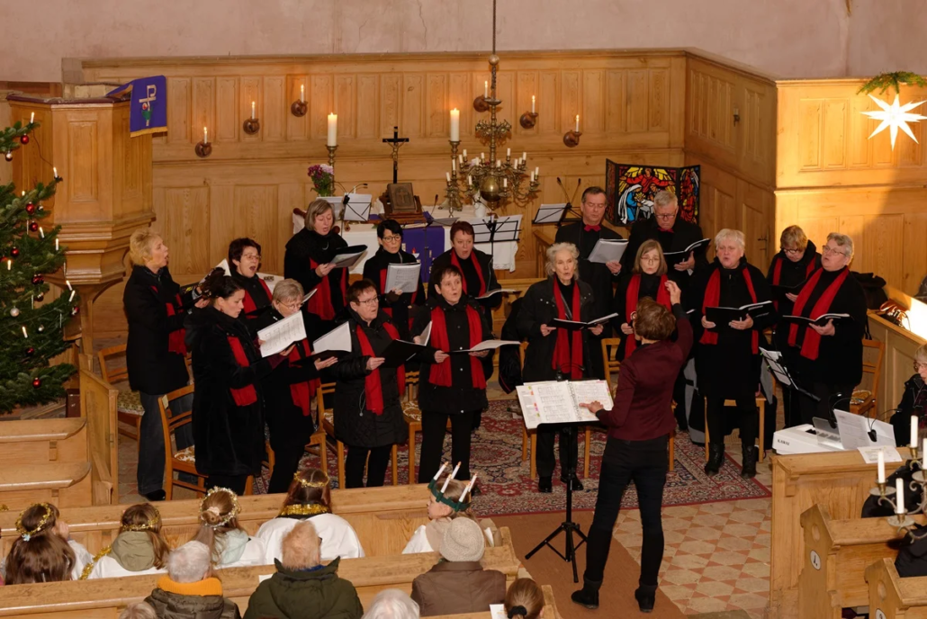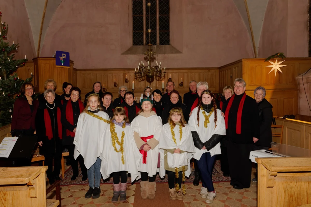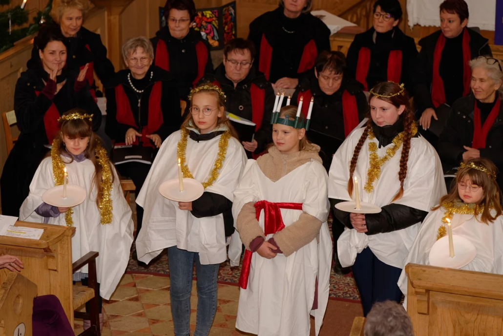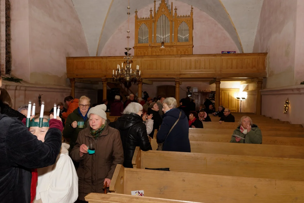 Die Lucia-Kinder teilten Kerzen an alle Besucher aus und luden damit zu einem gemeinsamen Moment des Lichts ein. Anschließend waren die Gäste eingeladen, zusammen mit dem Chor zu singen – begleitet von Ruth-Margret Friedrich, die der Gramzower Orgel für diesen Abend wahrlich musikalische Flügel verlieh.