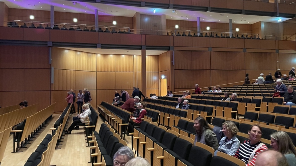 Und so trafen sich an diesem Freitag 16 musikbegeisterte aus der Friedenskirchengemeinde Krien – 15 Damen und ein Herr – um 15:45 Uhr auf dem Parkplatz vor dem Kriener Frischemarkt. In zwei Kleinbussen ging es los. Mit Liedern, Lachen und kleinen Leckereien verging die Fahrt wie im Flug.(Dankeschön an Maike, Caro und Kathrin).
