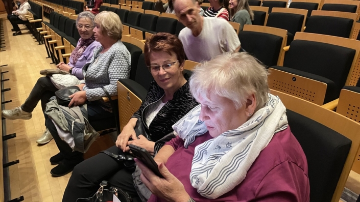 Unvergesslich blieben die Auftritte der Solistinnen und Solisten: **Joane Bell**, frisch genesen und mit rauchiger Stimme, **Evamarie Scheibe** – Jan Christofs Mutter – mit Krückstock, Mikrofon und unglaublicher Ausstrahlung, sowie **Karin und Wolf v. Matzenau**, die in ihrem Lied von 47 Jahren glücklicher Ehe erzählten.