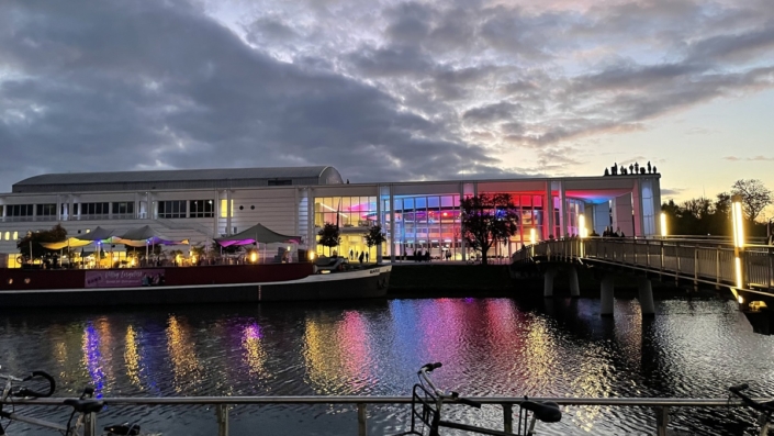 Gegen 18:30 Uhr trafen wir in Lübeck ein. Das MUK, mitten in der Stadt und direkt an der Trave gelegen, ist schon von außen ein echter Hingucker. Das Konzert war ausverkauft – rund 2.000 Menschen warteten gespannt auf den Einlass.