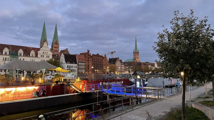 Wir „Landeier“ aus Krien und drumherum nutzten die Zeit für einen kleinen Stadtbummel: ein Blick auf die imposante Basilika St. Marien, durch die Altstadtgassen zum Holstentor, und dann am Ufer der Trave entlang bis zum nun geöffneten MUK.
