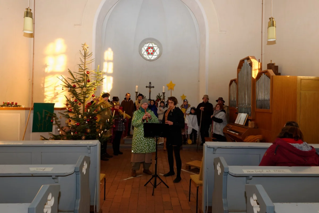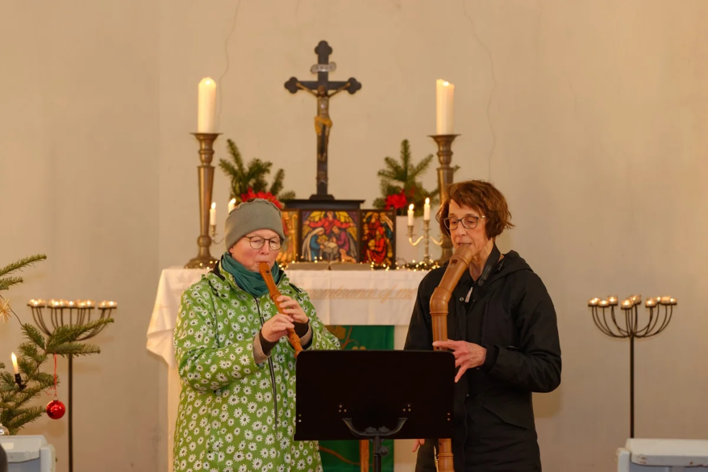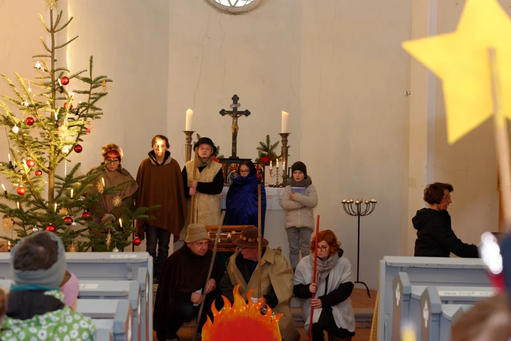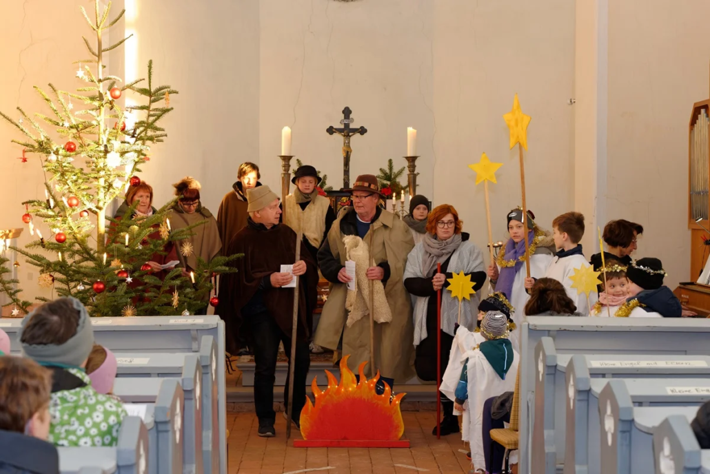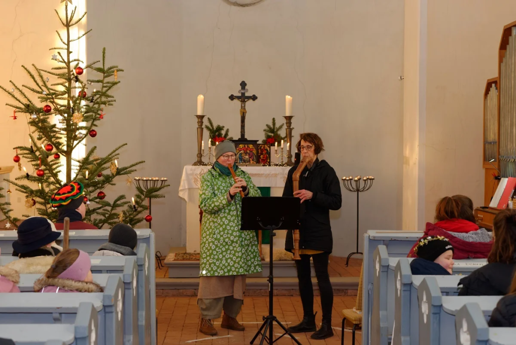 In Krien leitete Prädikant Burkhard Fröhlich den Gottesdienst mit Krippenspiel. Für die musikalische Gestaltung sorgten Kerstin Prust und ihre Tochter Greta als Flötenduo sowie Martin Schulz an der Orgel.