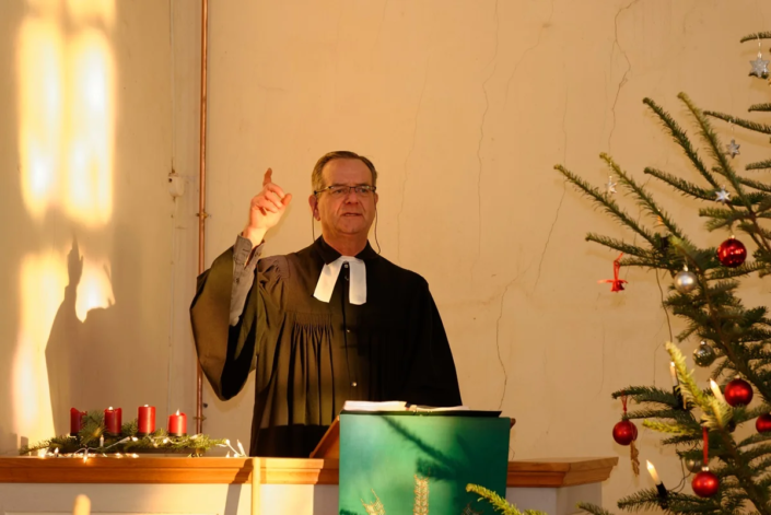 In Neuendorf B leitete Pastor Rupert Schröder den Heiligabend Gottesdienst.