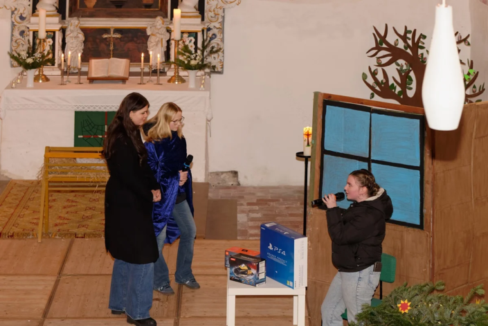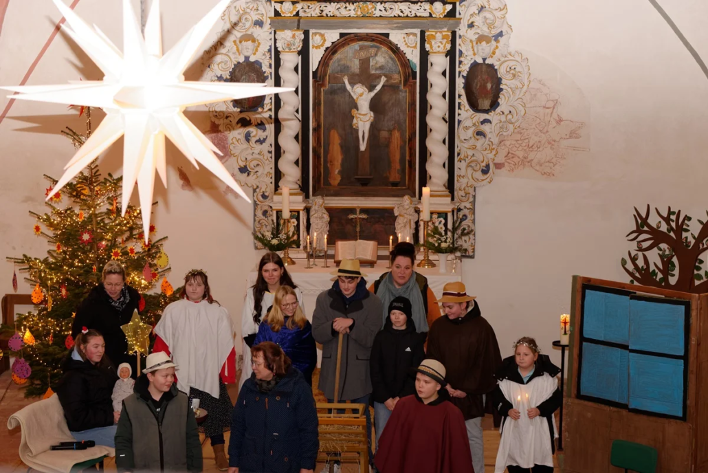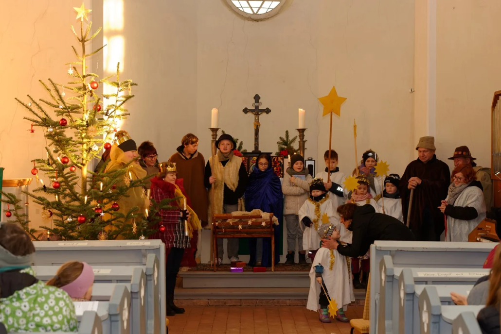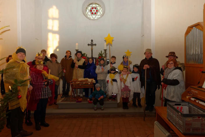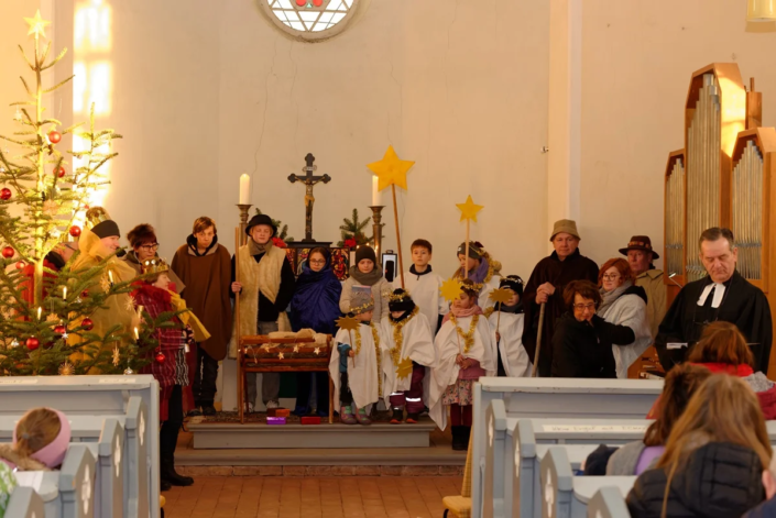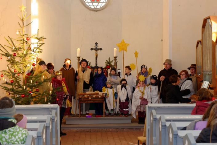 Unser Dank gilt ebenso allen Helferinnen und Helfern sowie den Spenderinnen und Spendern rund um die Heiligabend-Gottesdienste. Besonders beim Ausschmücken der Kirchen und beim Aufbau der Krippenspielbühnen wurde mit viel Engagement und Herzblut gearbeitet.