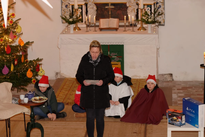 Die Darsteller aus Blesewitz waren Britta, Sandra, Annett, Liese, Anneli, Mia, Emma, Romy, Lilly, Dagmar, Frank, Niclas und Frederic. Liese hat die Weihnachtsgeschichte gelesen.