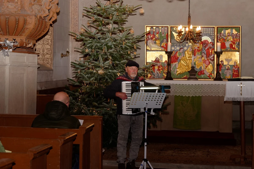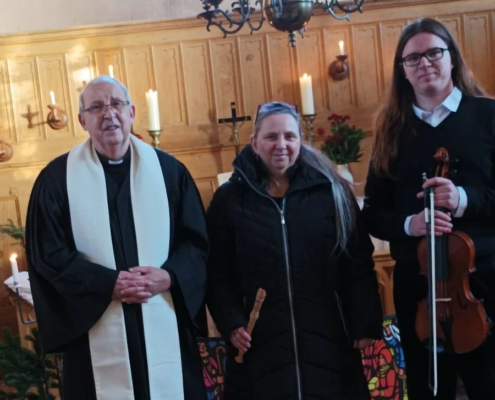 In Gramzow führte Prädikant Burkhard Fröhlich durch den Gottesdienst an Heiligabend. Musikalisch wurde er dabei von Martin Schulz an der Orgel, Jana Breitsprecher mit der Flöte und von Max-Robin Schultz auf der Geige begleitet.