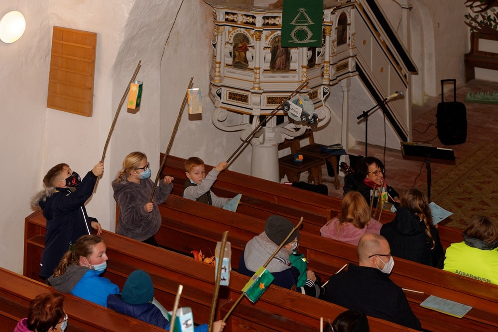 Um 17:00 trafen sich die Kinder mit ihren Eltern zu einer Andacht in der Kriener Kirche. Pastor Helge Jörgensen sprach über das Teilen und Geben. Gemeindepädagogin Kathrin Schulz präsentierte mit den Kindern die Geschichte um St. Martin.