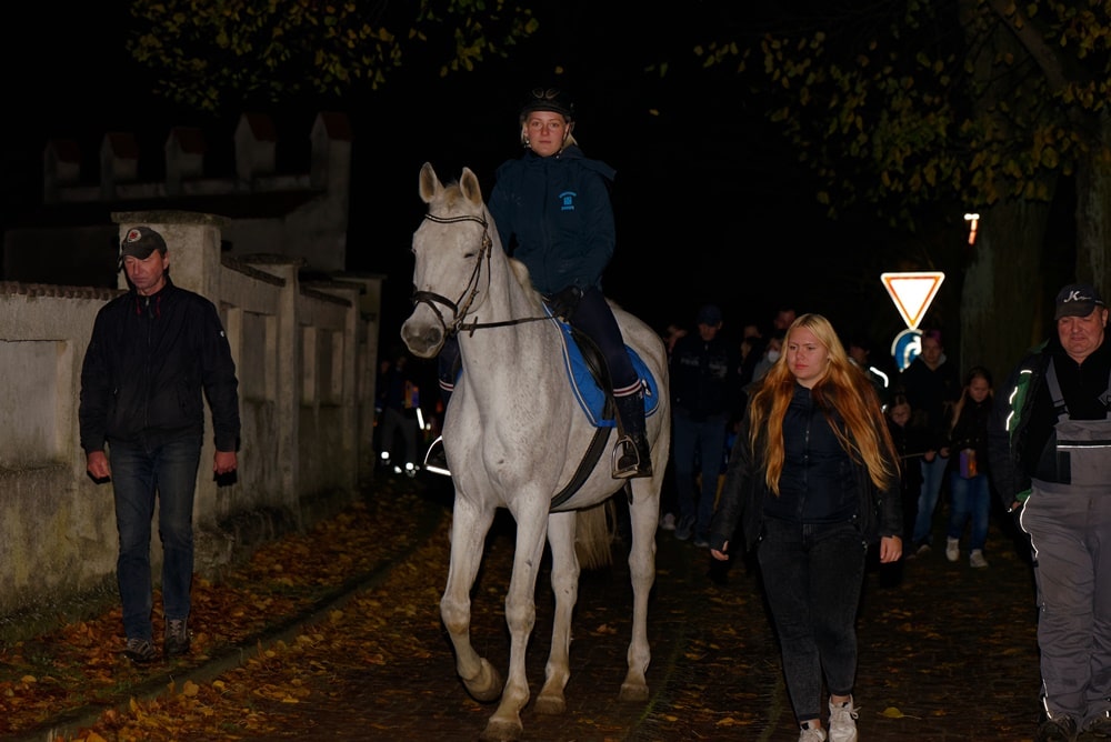 Ein anschließender Laternenumzug mit einem Pferd an der Spitze zog sich um die Kriener Kirche und endete dann am Kriener Gemeindehaus. Dort war Kinderpunsch vorbereitet und die Kinder verteilten ihre selbstgebackenen Martinshörnchen. (sehr lecker)
