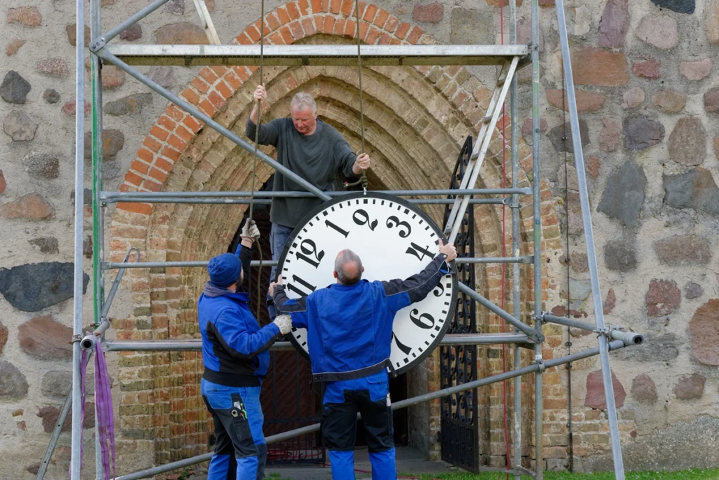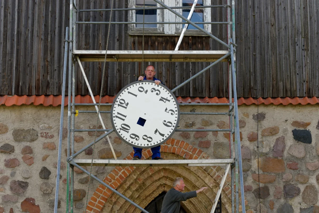 In der Friedenskirchengemeinde Krien werden die Glocken in Steinmocker, Neuendorf B und Blesewitz bis heute von Hand zum Klingen gebracht. Und in der Kirche in Krien selbst war das Ziffernblatt der Turmuhr kaum noch zu erkennen. Da stellte sich die Frage: Wer kann eigentlich solche großen Uhren reparieren oder gar eine ganze Läutanlage modernisieren? Der Uhrmacher in der Stadt wohl kaum.