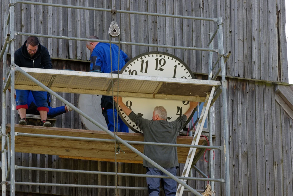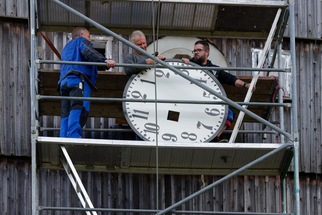 Sanierung Ziffernblatt Kirchturmuhr Krien am 30.06.2025